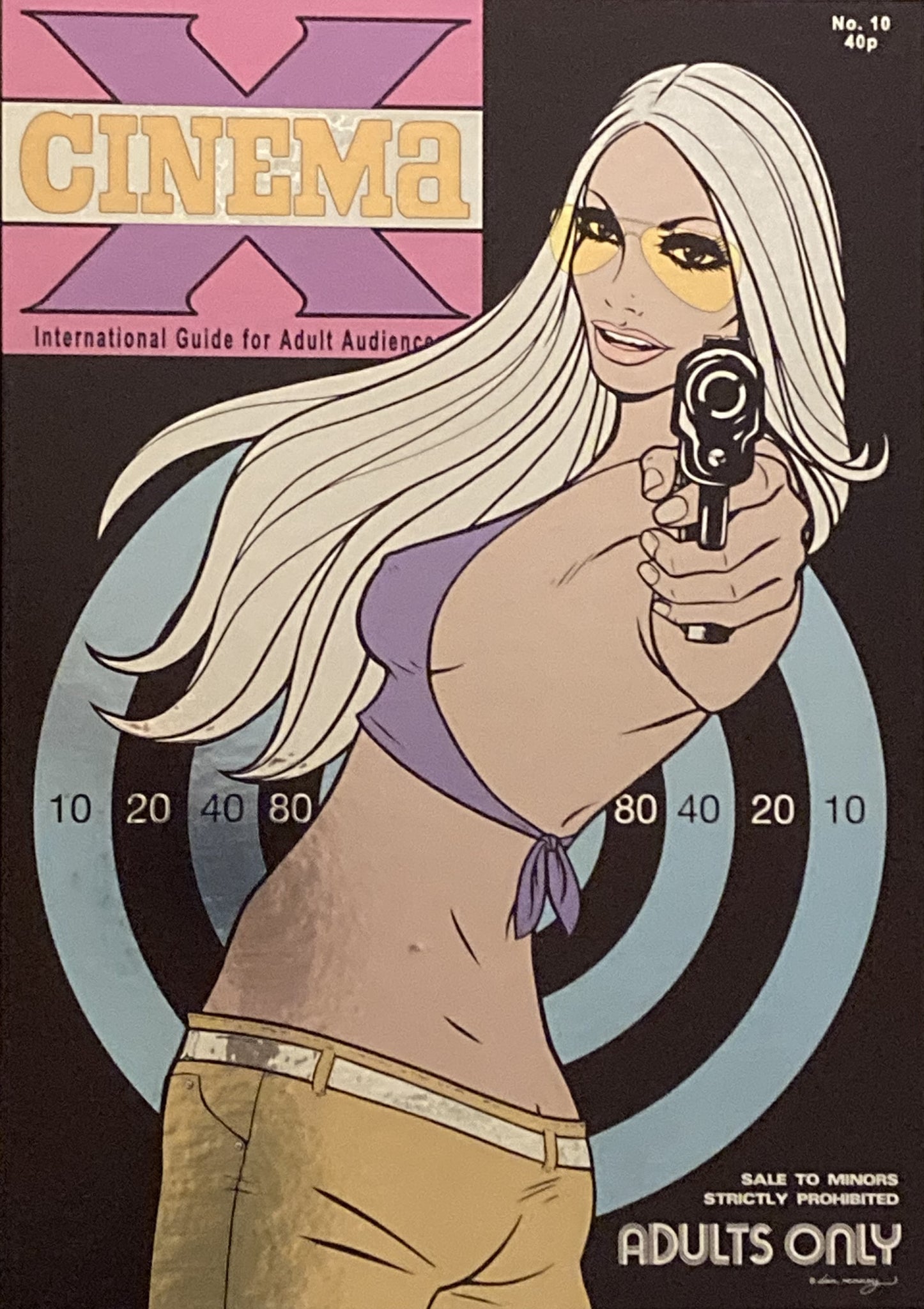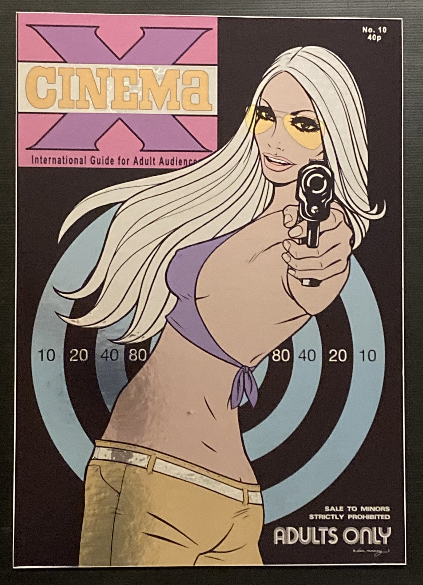 Chrome/Mirror prints: Original print, printed on chrome/silver, to give a mirror effect, an original cover of the exploitation magazine. Chrome details are the girl's hair, gun, belt, lettering and logo background.