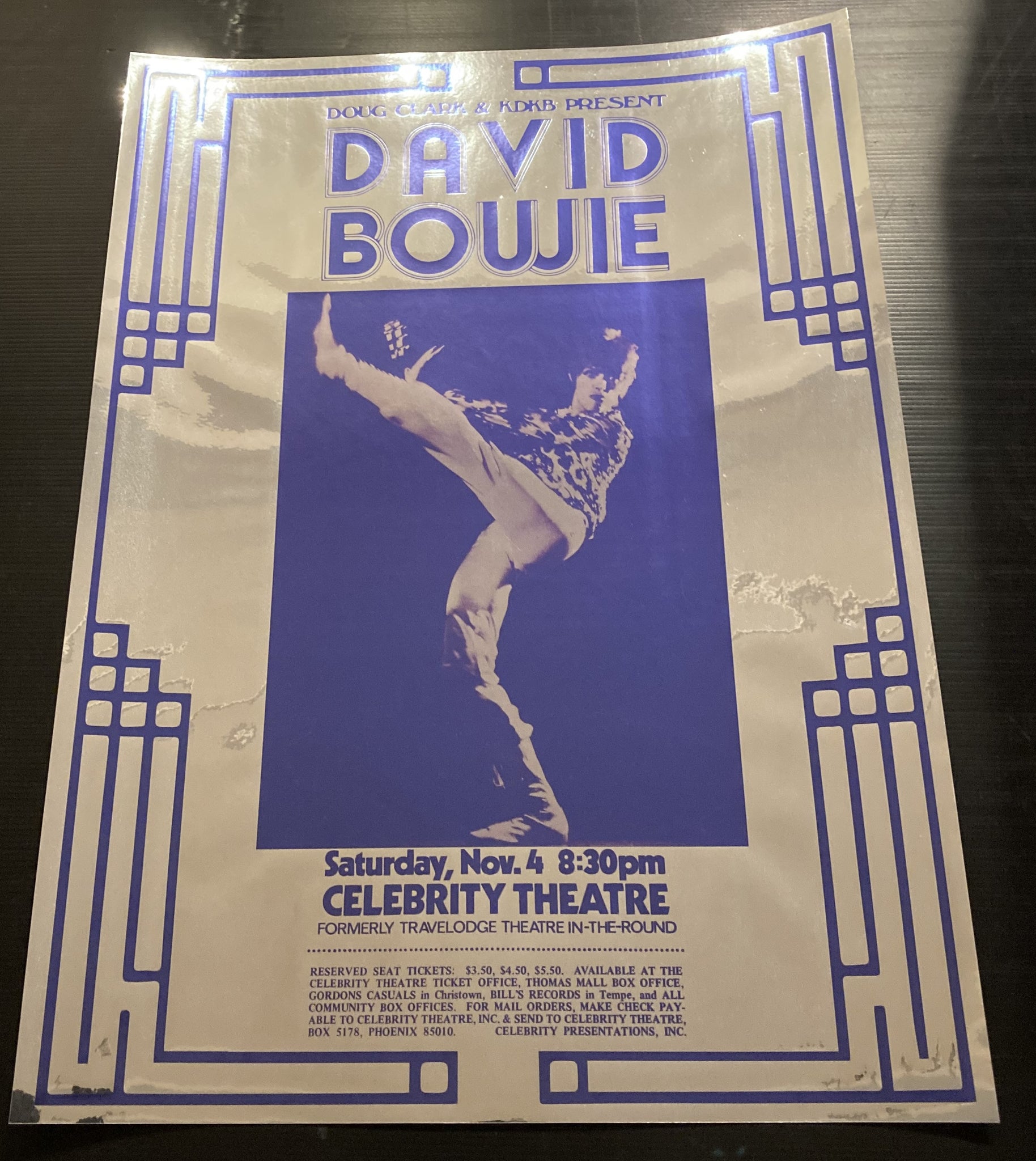 Buy David Bowie concert poster - Ziggy live Celebrity Theatre USA 1972 chrome mirror effect from range of Music Artist Posters A - I. More original movies posters, original music posters & memorabilia available