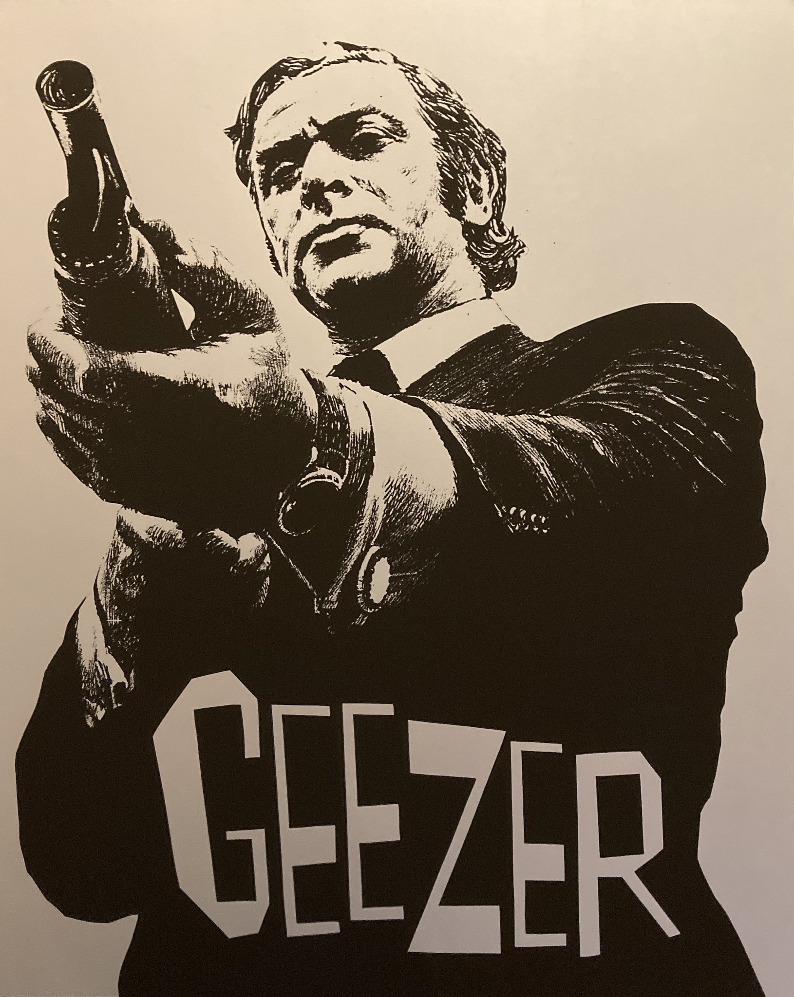 Screen print: Original hand created artwork screen printed on silver and based on Michael Caine`s character `Jack Carter`.